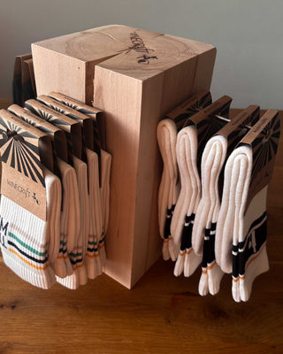 Cool, retro, super bequem. Unsere Socken fallen im Store auf. Das Display macht die Kollektion sofort erfassbar.
